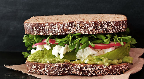 Freshly baked wholegrain seeds bread with basil, mozzarella rye and cranberries, layered with avocados. Let your tasteful days free up your mind.